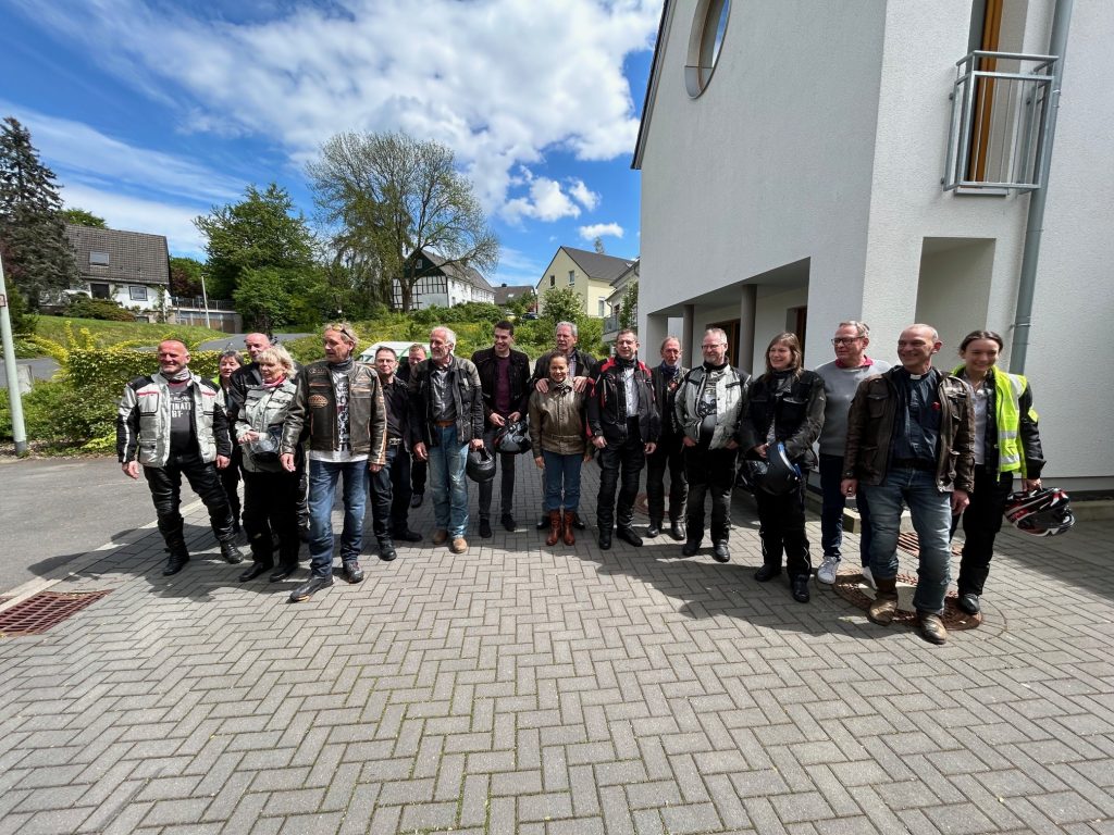 Am 04. Mai fand erstmalig ein Gottesdienst für Motorradfahrer in der evangelischen Dorfkirche Seelscheid statt. Bei der nachfolgenden, gemeinsamen Ausfahrt war der erste Zwischenstopp das Elisabeth-Hospiz. Rund 20 Motorradfahrer fanden sich zu einer Tasse Kaffee bei uns ein. Pfarrer Albi Roebke nahm die Botschaft des Gottesdienstes „Ich will dich segnen und du sollst ein Segen sein“ auf und würdigte unsere Hospizarbeit als einen Segen für die Region. Über diese Wertschätzung und den freundlichen Besuch der Motorradfahrer haben wir uns sehr gefreut.